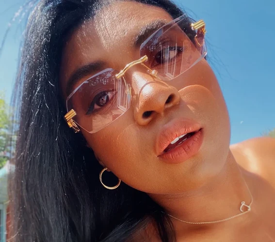 Lightweight rimless rectangle sunglasses with a modern pink gradient — perfect for everyday style with a bold twist.